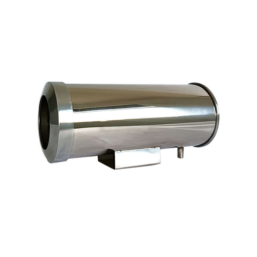 产品简述:对于高温环境,防护罩应采取特殊的冷却降温手段。常见的冷却系统有风冷系统、水冷系统,还有涡旋致冷、氟利昂、氨致冷等方式。该设备采用双层不锈钢和加厚不锈钢盖制成,使用固定支架(或万向抱箍方便调整),适用于各种CCD摄像机。风冷系统使用的是空气流动冷却原理,采用强迫通风的方式将冷却剂(净化空气)送入防护罩或防护罩隔层中,将防护罩内热量带出,达到冷却目的;并从前端盖输出形成风帘起到防尘作用。具有较好的抗腐蚀及防灰尘能力,能在高温多尘腐蚀性气体较多的环境中使用。